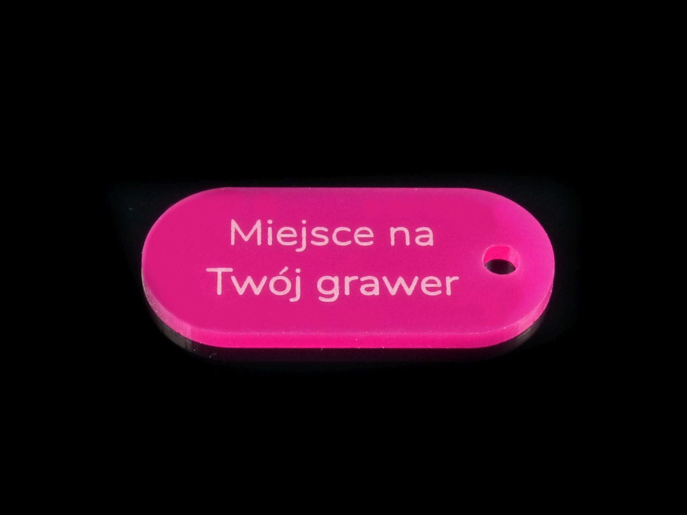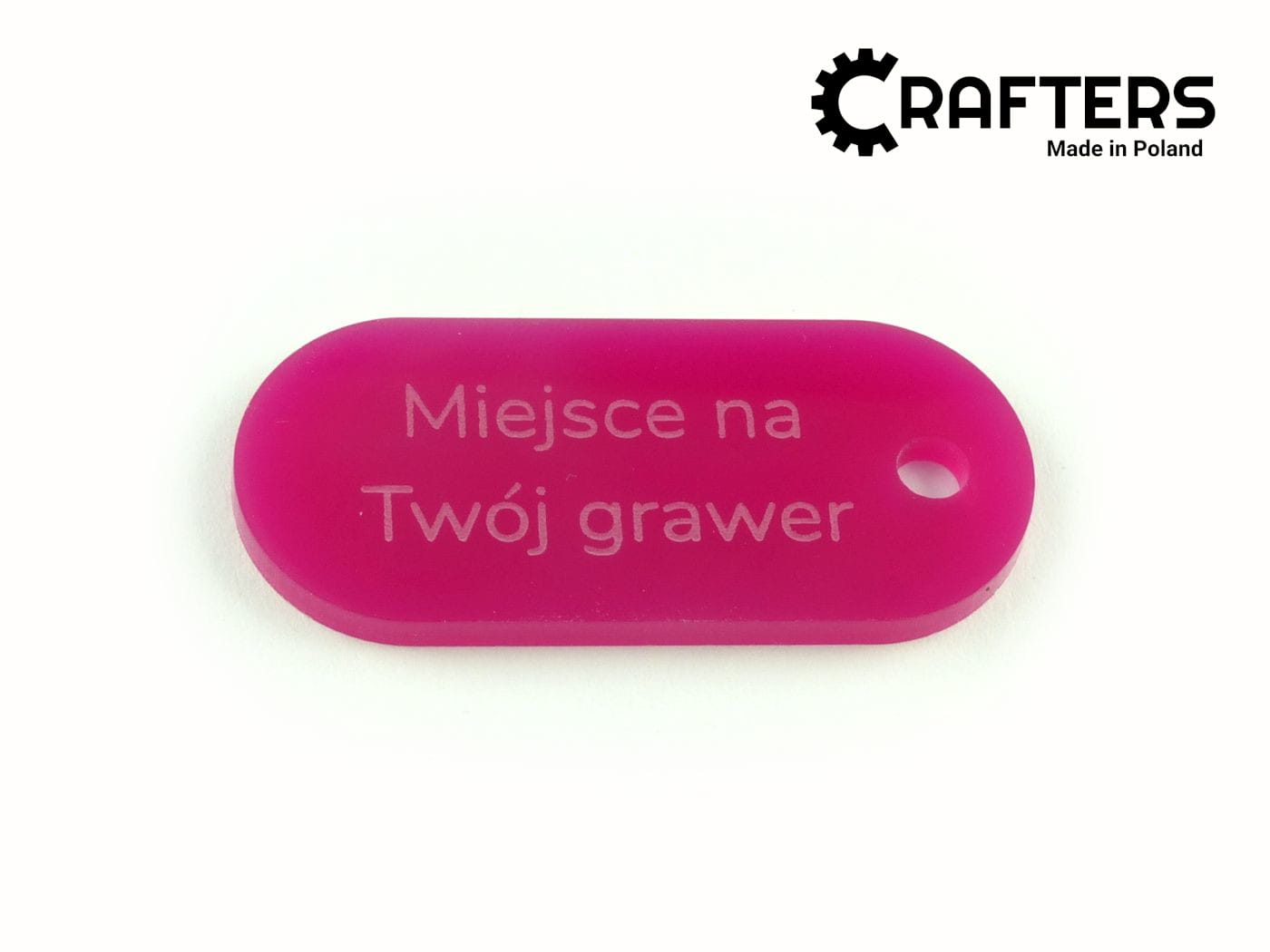 Brelok 5 cm, różowy nieprzezroczysty, z grawerunkiem