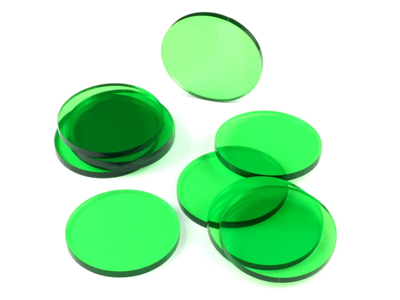 Kształty akrylowe - transparentne, zielone, 10 sztuk, koła, 50x3 mm