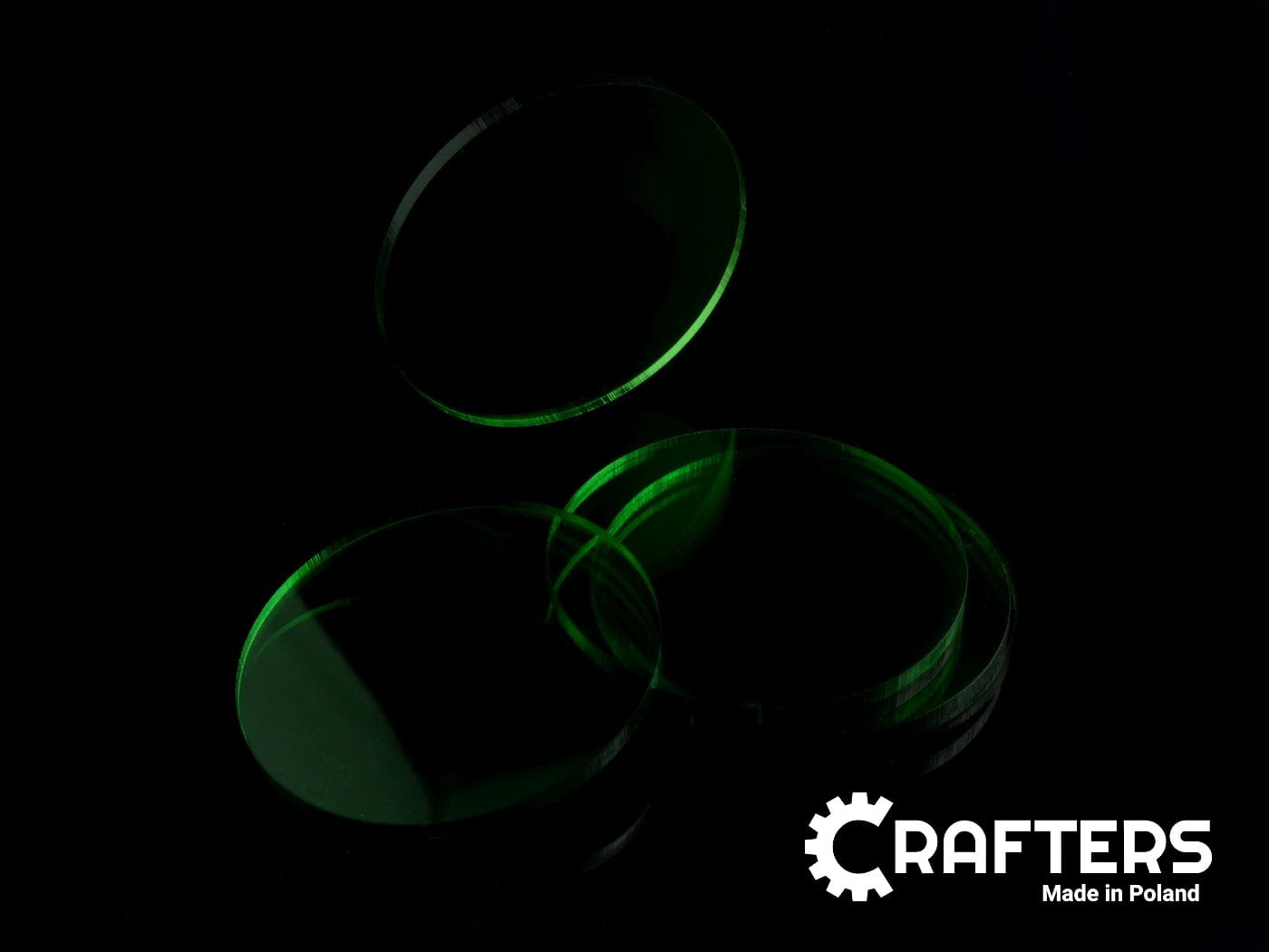 Kształty akrylowe - transparentne, zielone, 5 sztuk, koła, 60x3 mm
