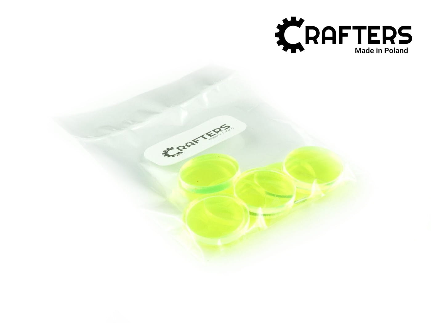 Kształty akrylowe - transparentne, zielone(FLUO), 10 sztuk, koła, 22x3 mm