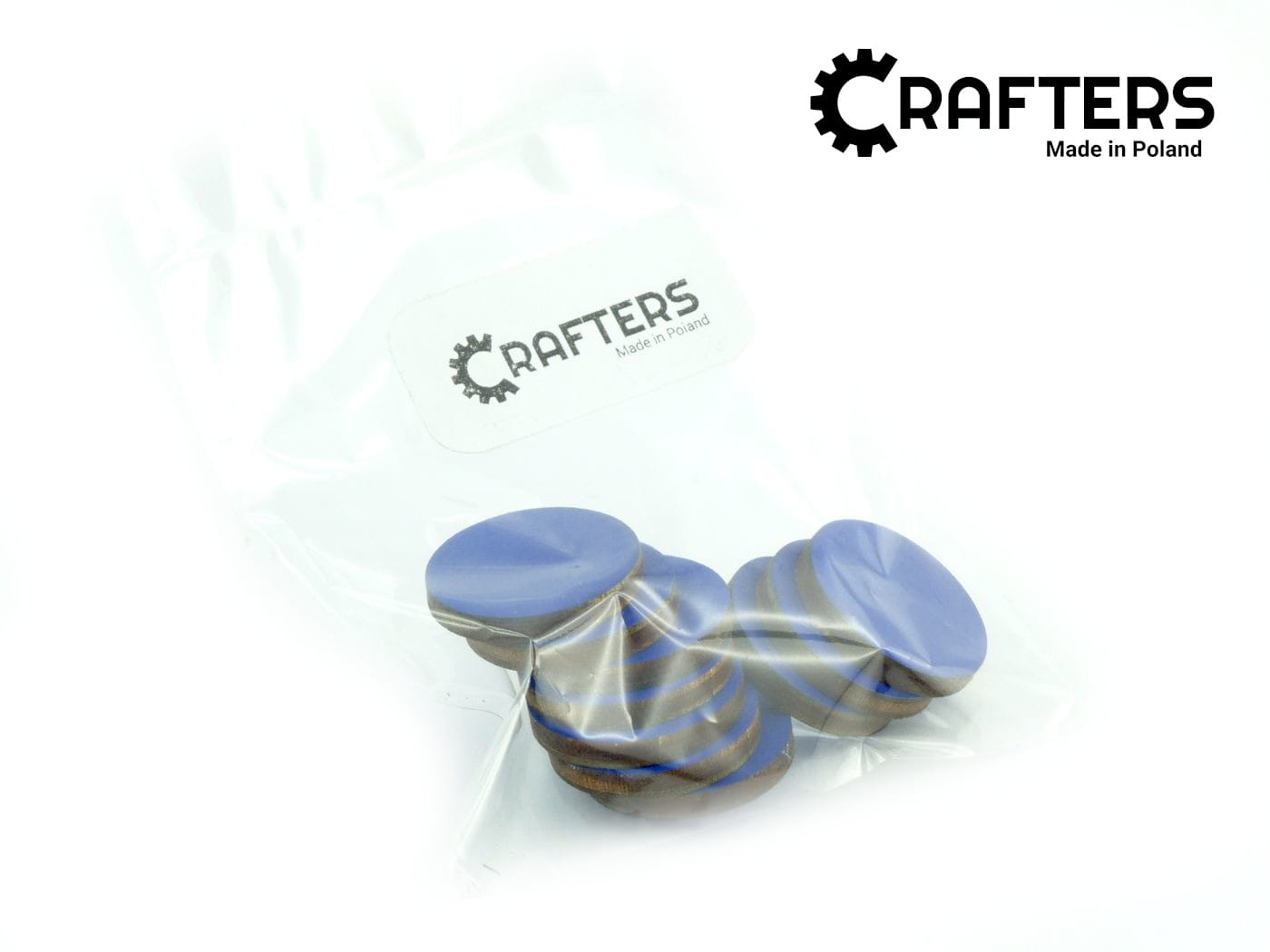 Nasze produkty nie są okopcone i przypalone. Zestaw 10 kół o średnicy 22 mm, wykonanych ze sklejki brzozowej o grubości 3 mm.
