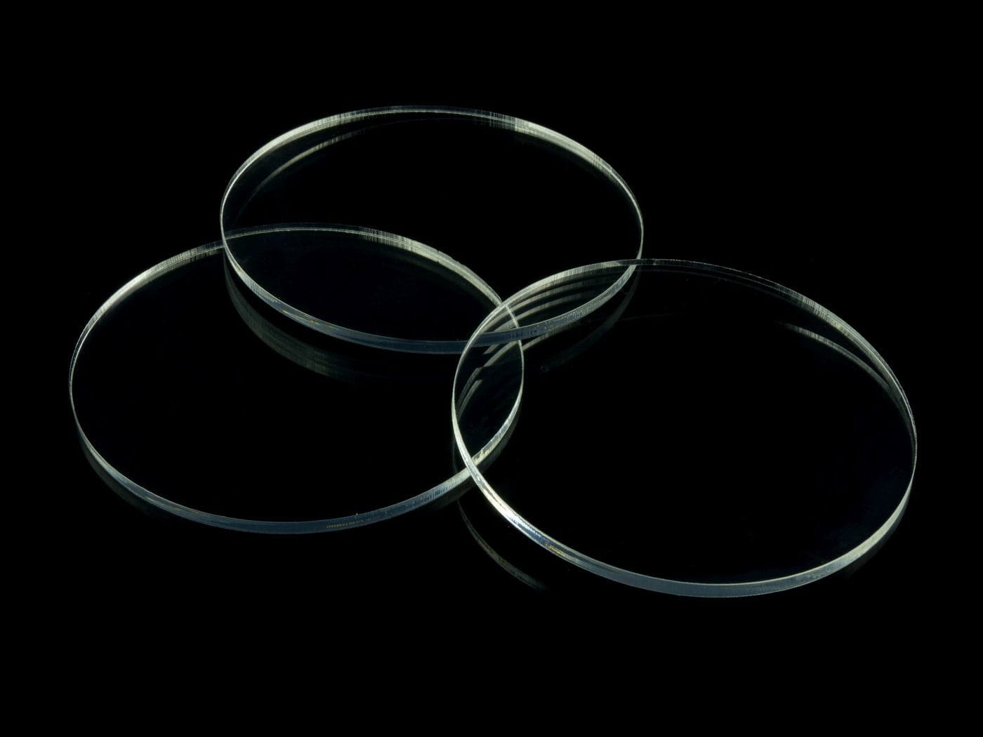 Akrylowe podstawki pod figurki w kształcie koła, o średnicy 80 mm i grubości 3 mm, 3 sztuki.