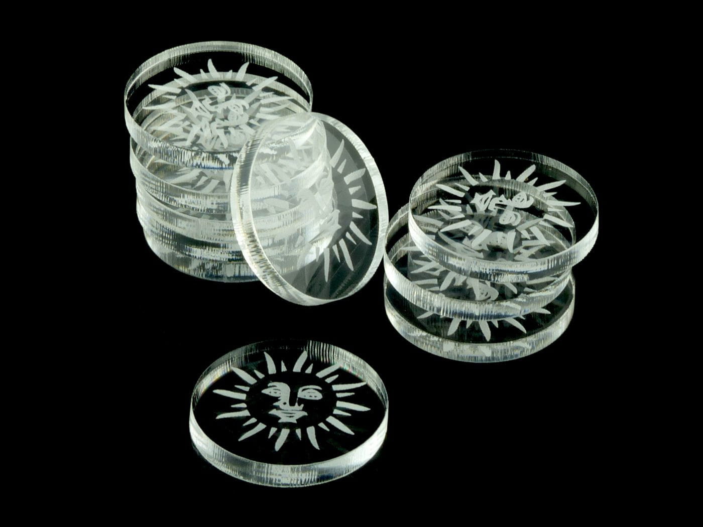 Żetony okrągłe z grafiką słońca, 10 sztuk, przezroczyste, 22 mm