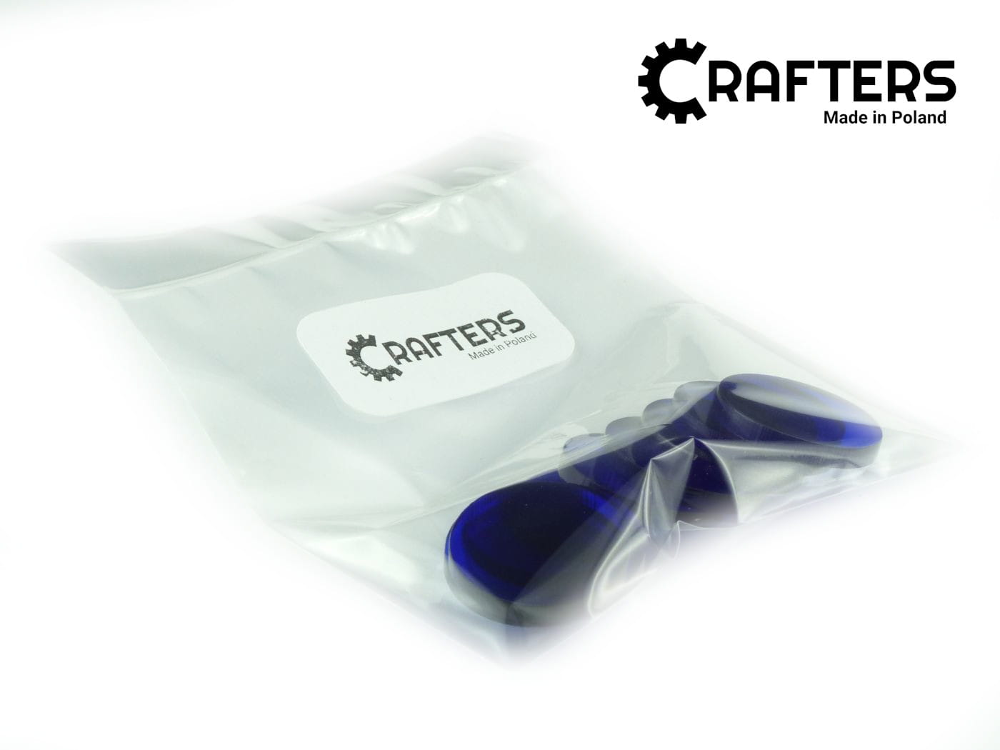 Zestaw 10 żetonów o średnicy 22 mm, wykonanych ze szkła akrylowego o grubości 3 mm.